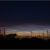 Gegen 1 Uhr, hatte ich meine Fotoausrüstung endlich aufgebaut und schoss auch schon die ersten Fotos mit dem Teleobjektiv. Bei 10 Sekunden Belichtungszeit waren die NLC schon sehr gut über dem nördlichen Horizont zu erkennen, obwohl die Sichtung mit dem bloßen Auge sich überraschenderweise deutlich schwieriger gestaltete, vor allem zum Zeitpunkt der lokalen Mitternacht gegen 1:30 Uhr, als die Sonne am tiefsten unter dem Nordhorizont stand. Ein wunderschönes Wellenmuster zeigte sich hinter den Windrädern des Windparks, das sich mit der Zeit auch visuell deutlich verstärkte und zum Teil in verschiedenen Farbabstufungen leuchtete. Während der Aufnahmen musste ich die Kamera mit meinem Körper und meiner Jacke schützen, da der Wind stellenweise recht kräftig in Böen blies. Je weiter der Morgen aber voran schritt, desto höher stiegen auch Leuchtenden Nachtwolken. Stellenweise war eine Veränderung des Feldes innerhalb von ein paar Minuten zu erkennen. Und auch der Formenreichtum dieses mittlerweile schon sehr beeindruckend gewordenen Displays war überwältigend.