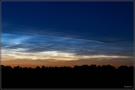 Am Abend erfuhr ich dann im AKM-Forum, dass die Leuchtenden Nachtwolken an diesem Morgen sogar in Genua sichtbar waren. Insgesamt handelte es sich um ein imposant ausgedehntes aber nicht sehr helles Feld, dessen Helligkeit ich zwischen 3 bis 4 einschätzte. Das Feld Leuchtender Nachtwolken am 21. Juni 2019 soll in der Ausdehnung und vor allem in der Helligkeit noch beeindruckender gewesen sein. Leider verpasste ich an diesem Abend diese Leuchtenden Nachtwolken…