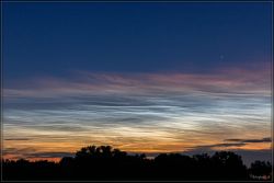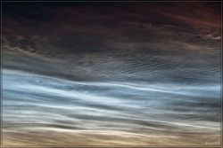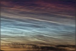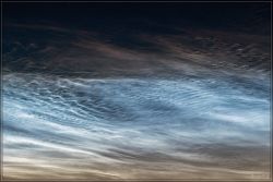 Trivia: Die silbrig-weißen Wolken entstehen in Höhen von ca. 83 Kilometern Höhe in der Mesopause und sind zwischen 45° und 70° Breite vor allem in den Sommermonaten sichtbar. In dieser Höhe werden die Wolken, die aus Eiskristallen bestehen und wahrscheinlich durch Kleinstmeteorite und Vulkanasche als Kondensationskeime gebildet werden, noch von der Sonne angestrahlt. Vor allem um die Sommersonnenwende tauchen diese Wolken häufiger in Richtung Norden auf.